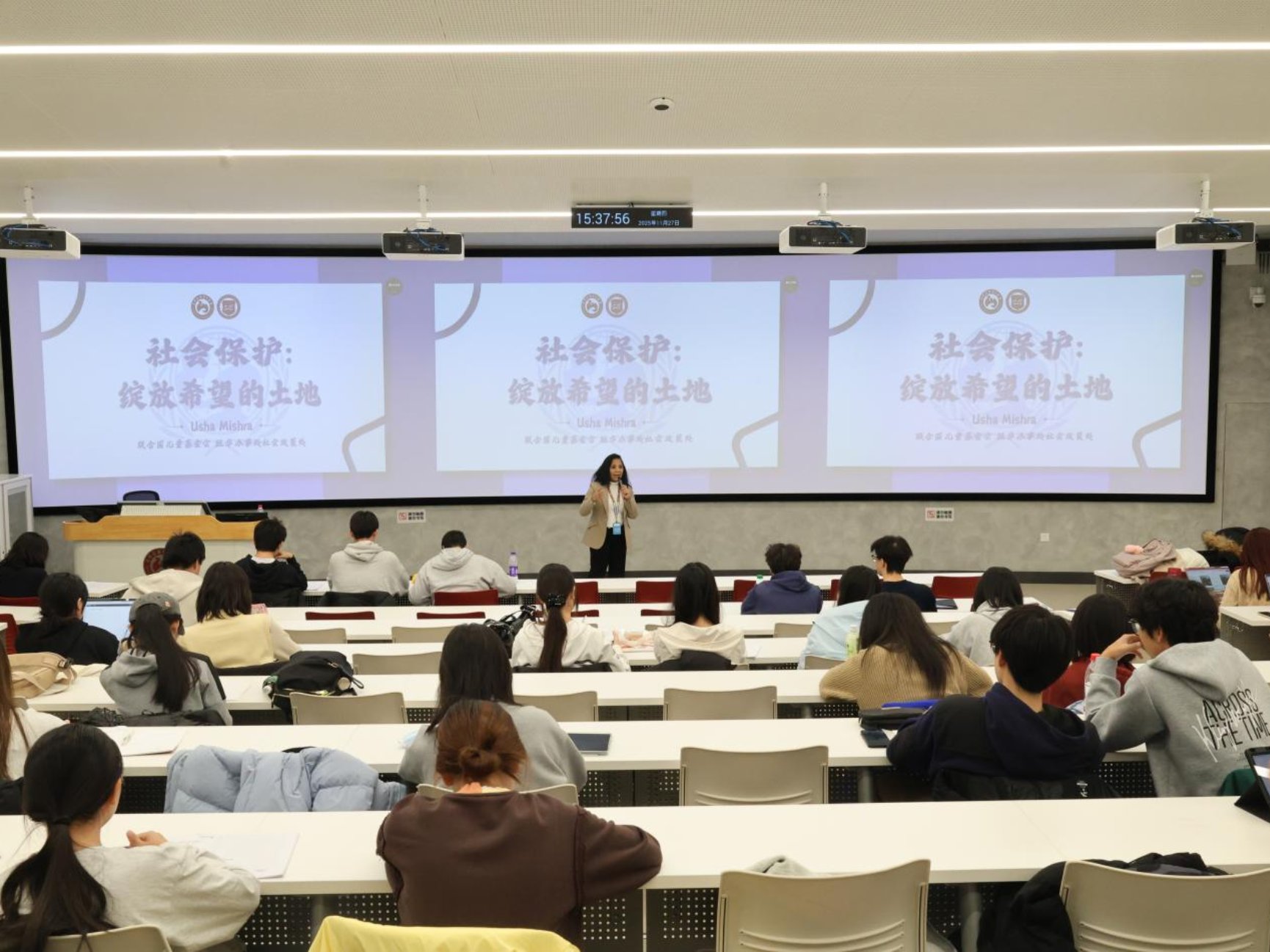 近日,制服做爱 在慎思楼401报告厅举办“社会保护:绽放希望的土地”主题学术讲座,本次讲座邀请联合国儿童基金会驻华办事处(UNICEF China)社会政策处处长乌莎(Usha Mishra)担任主讲嘉宾。联合国儿童基金会驻华办事处社会政策处项目官员于梦明,制服做爱 党委副书记、院长罗楚亮,副院长苗仁涛,制服做爱 姜全保、李帆老师参加讲座,讲座由制服做爱 茅倬彦教授主持,制服做爱 百余名师生到场参与。