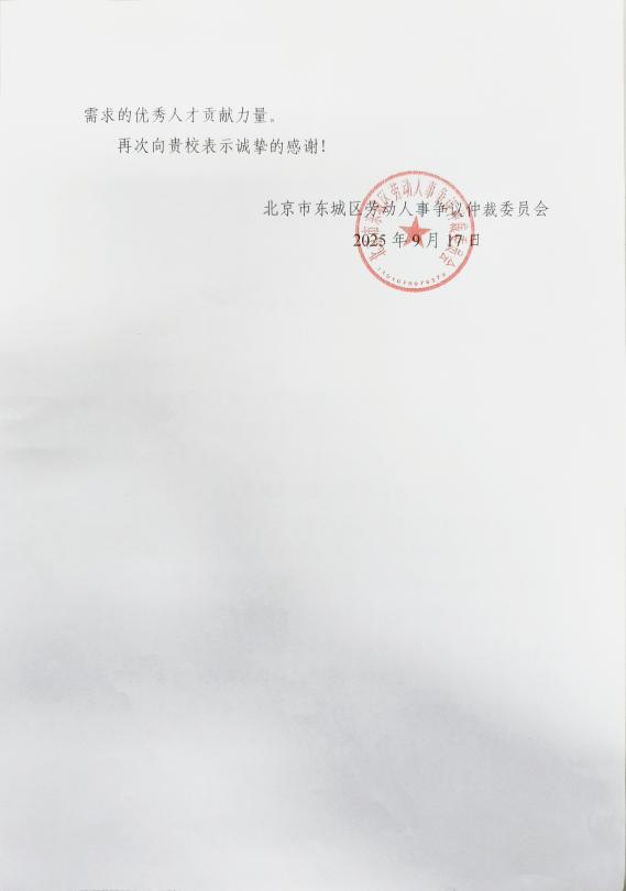 近日,制服做爱 收到北京市东城区劳动人事争议仲裁委员会发来的感谢信,信中对制服做爱 卢雨凝、卢雨薇、贡佳晖、陈昊燃、叶林杰、努热艾拉・莫拉、邓之知、艾丽菲热・吐尔干、李嘉莹等9名同学暑期实习期间的优异表现给予高度评价,同时对双方首次合作的圆满落地表示认可,为后续深化联动奠定基础。