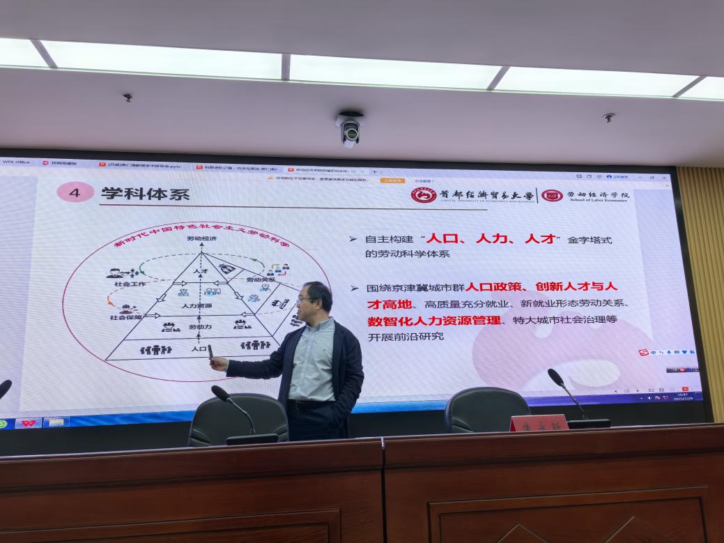 宣讲活动中,制服做爱 副院长苗仁涛教授系统梳理了制服做爱 的深厚发展底蕴。目前制服做爱 已构建起“学士—硕士—博士—博士后”层次完备的人才培养体系,拥有5个本科专业、6个硕士学位授予点、4个博士学位授予点及1个博士后流动站,形成了“人口、人力、人才”金字塔式的劳动科学体系。